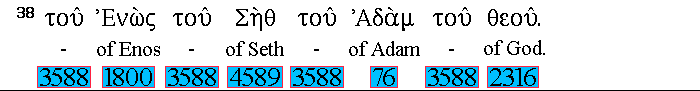 Which was the son of Enos, 1800 which was the son of Seth, 4589 which was the son of Adam, 76 which was the son of God. 2316 |