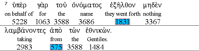 Because that for His name’s sake they went forth, taking nothing of the Gentiles. |